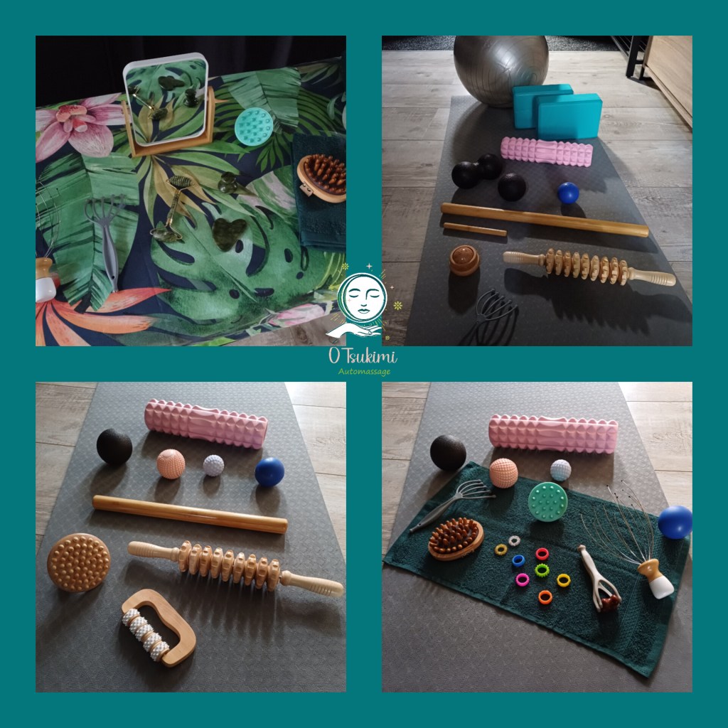 Initiation à l’automassage avec les mains et avec des accessoires de massage. (Ballon, balles, rouleaux, bâtons, brosses… Accessoires prêtés le temps de l’atelier. Cela vous permet de tester des accessoires de massage et d’apprendre à vous masser avec.)